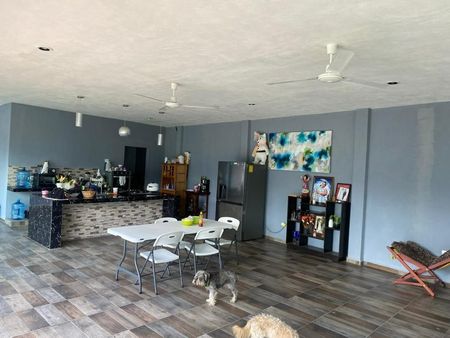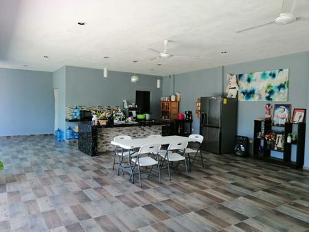 Casa tipo hacienda con salón para sala-comedor y cocina. Cuenta con una pequeña bodega para la cocina y 1/2 baño.