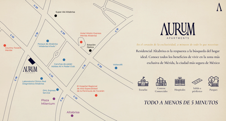 Aurum se ubica en Altabrisa, la zona residencial de mayor plusvalía en la ciudad de Mérida, Yucatán