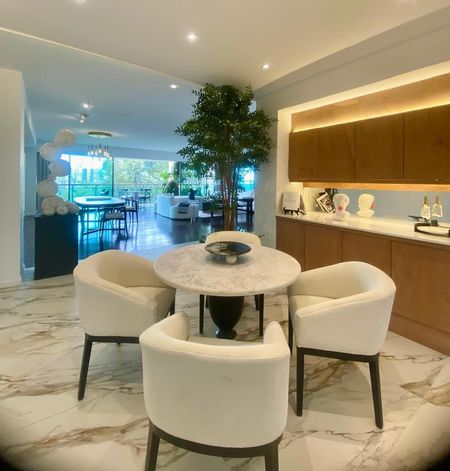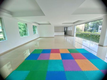 Son 290 metros Sala , comedor , 3 recamas con vestidor y baño , estudio, Terraza , cocina , desayunador , lavandería, cuarto de servicio, Alberca, gimnasio, salón de eventos , jardín , cancha de pádel , 3 estacionamientos, jardín para mascotas