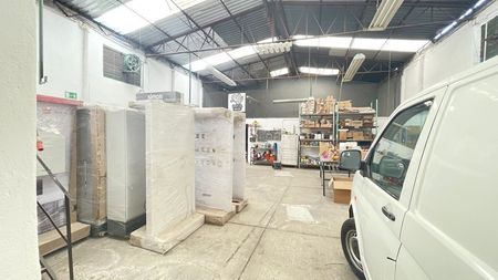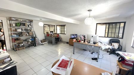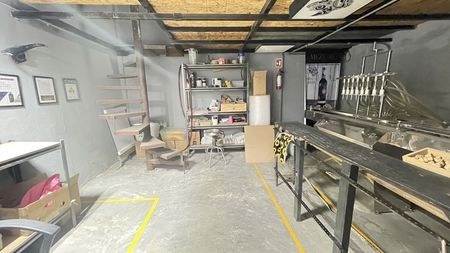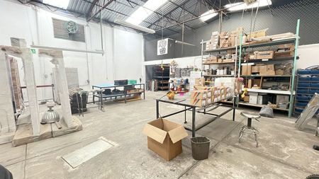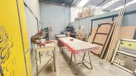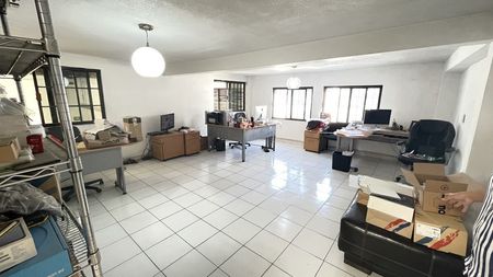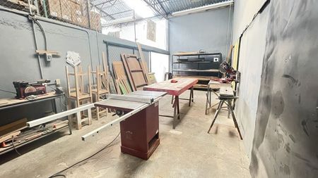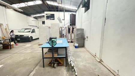 Cuenta con oficina de 2 niveles y tapanco bodega, buena luz natural