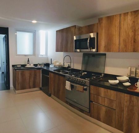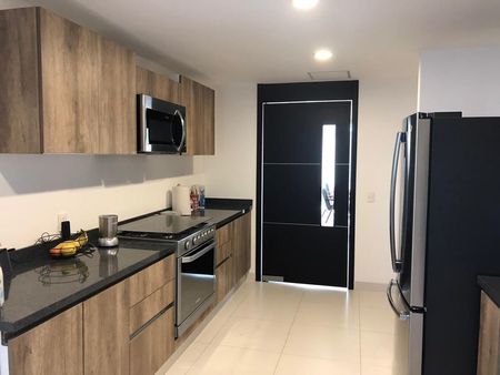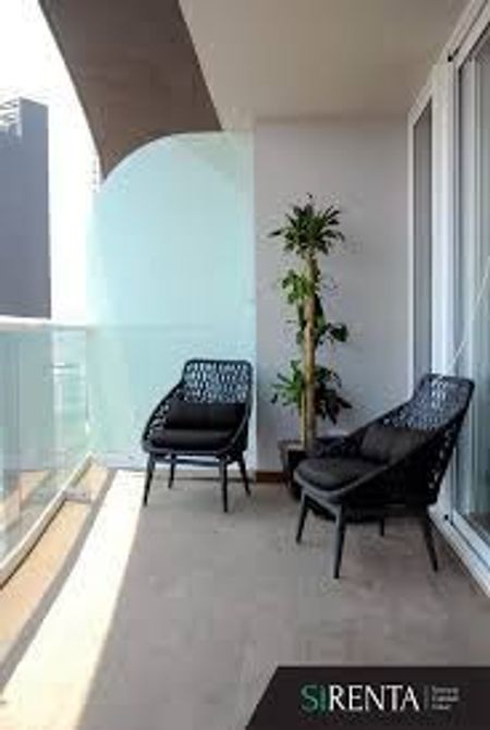 Este departamento cuenta con 176m2 distribuídos en 2 recámaras, 3 1/2 baños, family room , cuarto de lavado y de servicio con baño, terraza y 2 estacionamientos, lavavajillas y refrigerador. Se renta por 18 meses mínimo.