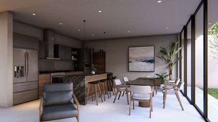Sala ,comedor, cocina integral con cubierta de granito, una alacena independiente a la cocina .