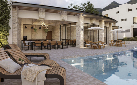 • La terraza incluye la barra y contra barra de concreto forrada de porcelanato en formato 1.20 x 60, incluye tarja doble. SIN PUERTAS DE ACERO, SIN ASADOR EMPOTRADO.
