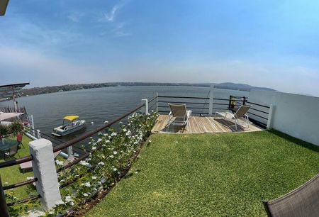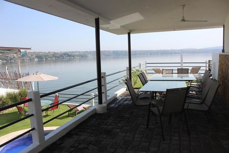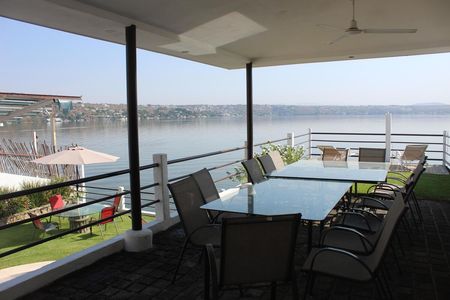 Es una amplia propiedad a orilla del lago, cuenta con jardín, alberca, jacuzzi, medio baño exterior, asador, palapa, lanchero, sala interior y exterior, cocina, amplias recámaras con aires acondicionados, principal con hermosa vista al lago, estacionamiento techado para tres autos.
