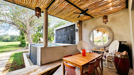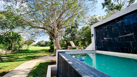 Casa Algarrobos trae consigo acabados de lujo en una sola planta, con pisos de mármol, piscina con una fuente, espejo de agua, entre más.