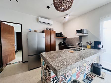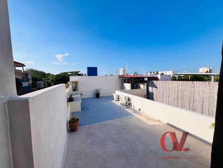 En la segunda planta hay un departamento completamente independiente con estancia, cocineta, recámara con baño completo y una terraza grande con área de asadero. En el tercer piso hay otro cuarto con dos terrazas donde podrás ver el mar.