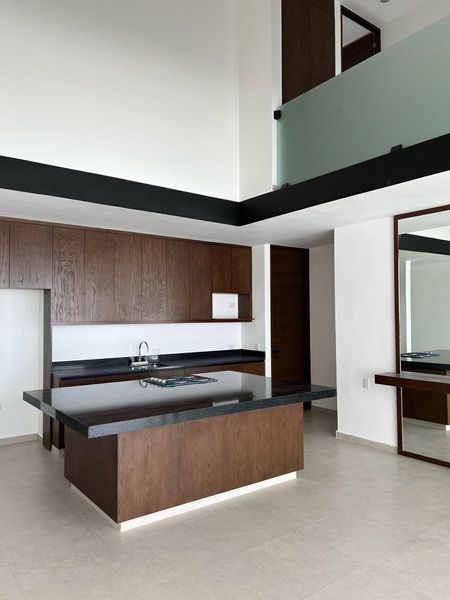 -Cocina con meseta de granito y tarja de acero inoxidable.