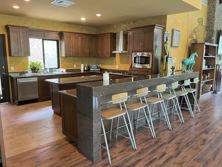 -Tres baños para invitados en el exterior y dos baños para invitados en el interior del salón.