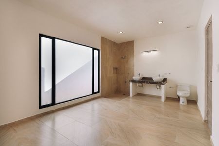 - 1 Habitación principal con baño completo closet vestidor (sin carpintería) , con ventanales para acceso a la piscina.