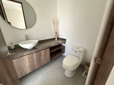 Vigilancia 24 horas, extensas áreas verdes con jardinería de diseño, alberca, gimnasio, baños, área de juegos infantiles, canchas deportivas.