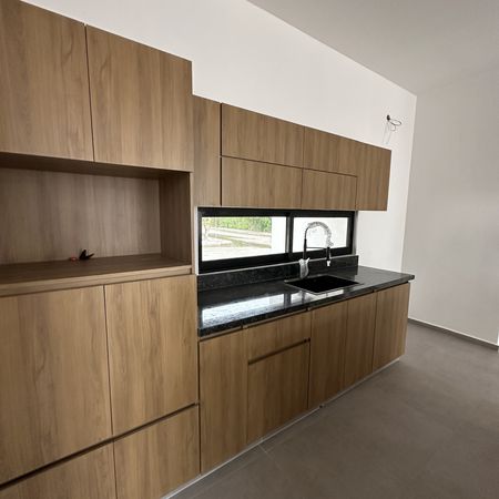 •Granito color gris Oxford o verde ubatuba en isla y barra de cocina.