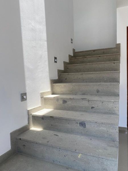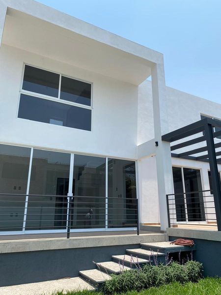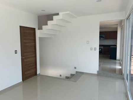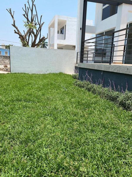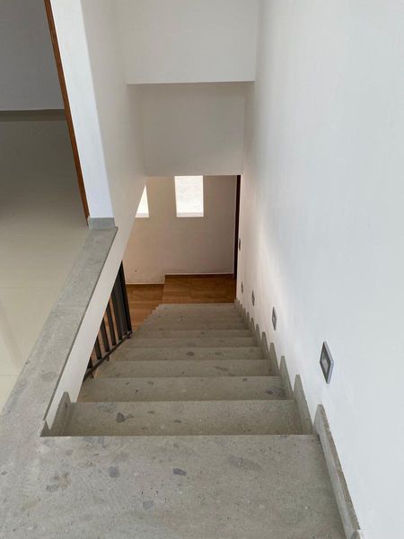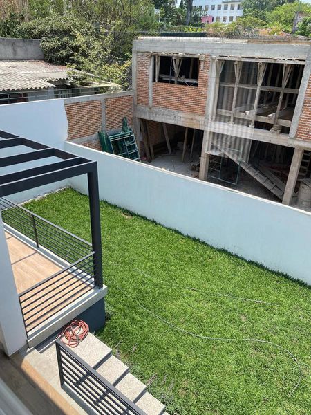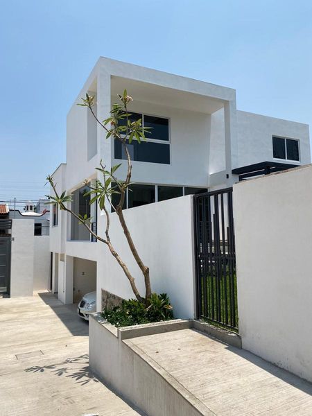 La propiedad se construyó en dos niveles, a nivel de calle tiene el estacionamiento techado para dos autos y el acceso al jardín, al entrar a la casa se observa una amplia terraza que se conecta con la cocina y el comedor, y a unos pasos está la sala con un amplio cancel con vista al jardín, hay medio baño, es este piso está la recámara principal con walking closet, baño con doble lavabo y cancel de vidrio templado en la regadera, las escales nos conducen al segundo nivel donde están dos recámaras con clóset y un baño completo, ambas recámaras tienes acceso a un roofgarden, en el nivel inferior se encuentra un salón de usos múltiples que se puede acondicionar como salón de juegos, familyroom u oficina; tiene cuarto de lavado y cuarto de servicio con baño completo.