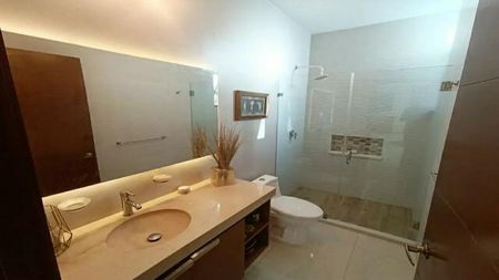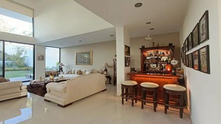 Planta Baja : ingreso puerta de parota con doble altura , recibidor, estar de tv , baño completo para visitas , amplia sala y comedor con vista jardín y alberca , terraza con sala y comedor de exterior . Cocina integral equipada , barra con cubierta de cuarzo , desayunador , despensa , cuarto de servicio con baño completo cuarto de lavado .