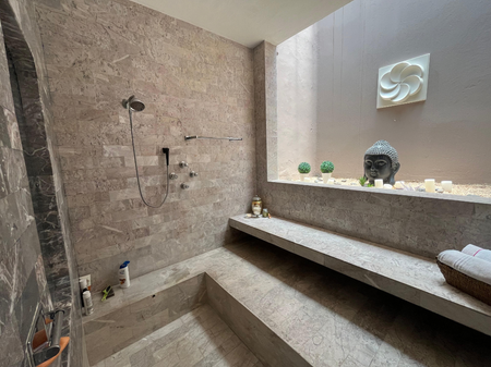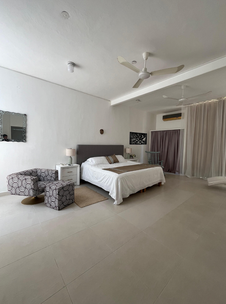 -Habitación en planta baja con área de clóset, baño completo y sauna