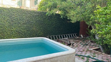Se vende hermosa casa en la Colonia Alemán de dos pisos con piscina tiene garaje para tres vehículos portón eléctrico presurizador de agua gas estacionario tres recámaras en la parte de arriba dos áreas de estudio cuarto de servicio con baño Sala comedor y cocina amplios ubicado en una de las mejores colonias de Mérida precio
