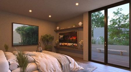 Arriba tiene las 3 habitaciones, la principal con vestidor y zona húmeda para el y para ella, y las dos habitaciones con su baño completo t closets, balcón.