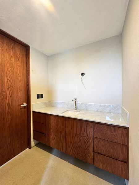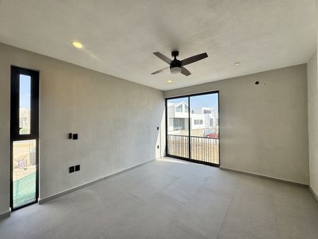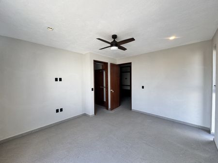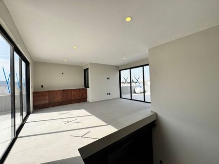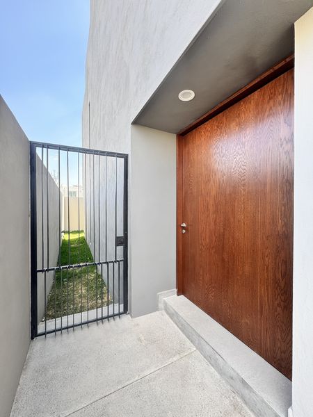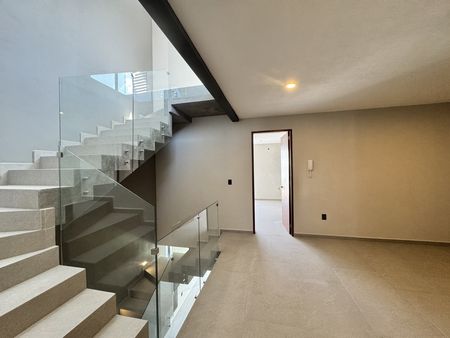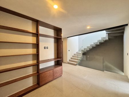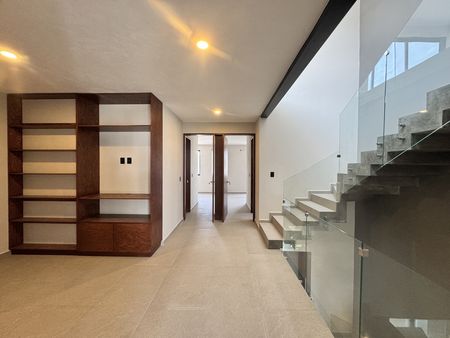 En la planta alta encontramos una amplia sala de estar que funciona como distribuidor hacia la recámara principal, la cual cuenta con un amplio baño vestidor, así como hacia las dos recámaras secundarias, cada una equipada con clóset y baño completo.