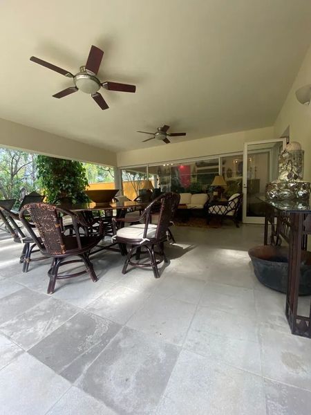 Planta Baja: sala, comedor, cocina amplia con ante comedor, cuarto de servicio con baño completo, bodega, área de lavado, terraza con jardín amplio dando vista hacia la cañada, área de TV, sala de juegos.