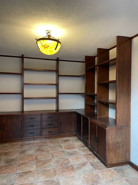 En planta baja: Espacio de estacionamiento para 2 autos, espacio de sala, comedor, barra, medio baño, cocina integral, con barra y espacio de alacena, patio, estudio, área de lavado y cuarto de servicio con baño completo