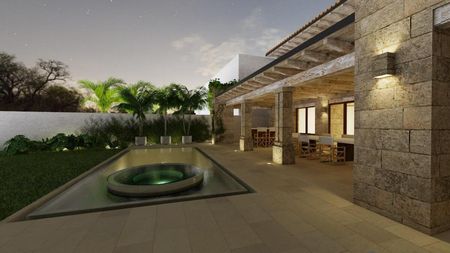 Primer nivel: Sala, comedor, family room y estudio u oficina, medio baño de visitas. Cocina con finos electrodomésticos como refrigerador y congelador gemelos Electrolux. Estufa con doble horno y campana industrial marca Delta. Sistema de sonido Bosé para sala y terraza. Amplísima terraza con vistas al jardín y alberca la cual cuenta con paneles solares para su calentamiento y bomba de calor, con el sistema inltellitouch para el control de la alberca y jacuzzi, de manera remota desde el celular. Asador industrial en esta área con área para servicio de la terraza .Riego por aspersión en todas las zonas Rain Bird. Luz led en todos los muebles de Tv Y libreros empotrados. Las losas tienen un aislante térmico y una cama de aire entre la duela y viguería que permite que la temperatura sea más fresca. Cisterna de 20, 000lts. Toda la grifería española en baños Ramon Soler con acabado de oro cepillado. Aires acondicionados mini Split LG invertir (se pueden controlar remotamente desde el celular). La casa cuenta con 22 paneles fotovoltaicos para el consumo de luz marca longi Solar de 610w c/u y dos inversores marca Growat de 6 kw. Todo el sistema de la casa es con luz excepto por la estufa y asador que son de gas, pero con el sistema de paneles garantizamos el bajo costo en el consumo de energía.