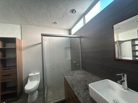 Tercer nivel: la terraza con piso y tarja cubierta con barra de cantera. El mismo tercer nivel cuenta con cuarto de servicio equipado con baño completo, y Área de lavado con boiler. Luz adecuada con 220 v para lavadora secadora y 110 v en toda la propiedad.