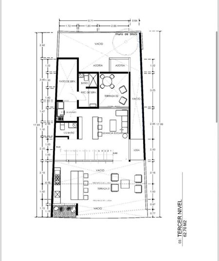 * 3er nivel: Terraza y sala social que se abre toda en, cuarto de servicio , lavandería, terraza en frente y atrás. Baño de visitas