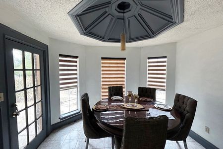 Con construcción estilo americano 100%, con jardín al frente, caseta de vigilancia o bodega, cochera doble techada y con portón eléctrico, recibidor, sala, comedor, cocina integral con barra, lavandería cerrada dos recámaras secundarias que comparten baño y la principal con baño integrado, todas con closets, techos de aguas, porche trasero, enorme jardín con un kiosko y palapa al centro.