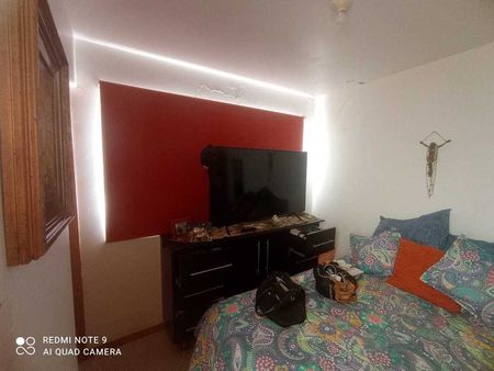 2 recamaras ( recamara principal con baño completo), 1 estudio ( que puede ser otra recamara), 1 baño completo.