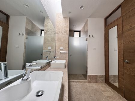 Primer piso: 3 recamaras todas con baño completo, la principal con amplio vestidor y amplio baño con doble lavabos, las recamaras secundarias con closets y baños completos, Hall de TV, closets de blancos.