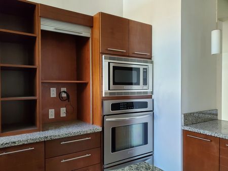 Cocina equipada con estufa marca SMEG, hornos empotrados y práctica alacena.