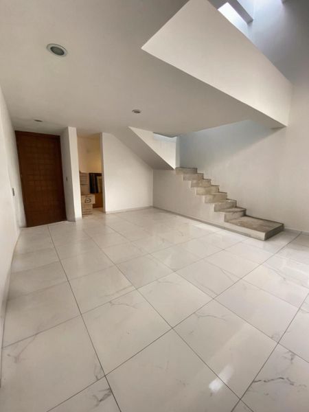 Acabados modernos: paredes enyesadas, iluminación LED, pisos de porcelanato tipo mármol.