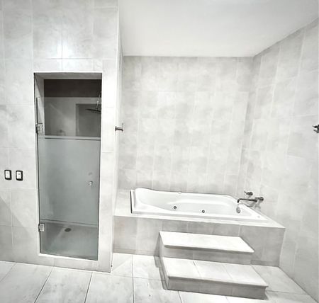 Casa de tres niveles, con vistas panorámicas, áreas con doble altura, pisos de porcelanato, acabados de carpintería de excelente calidad, cancelería contemporánea y puertas de cristal templado en baños
