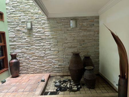 La casa es muy amplia porque cuenta interiormente: area de sala, comedor, espejo de agua, cocina equipada, estudio, area de terraza, medio baño y area de cochera para dos autos, automatizada.