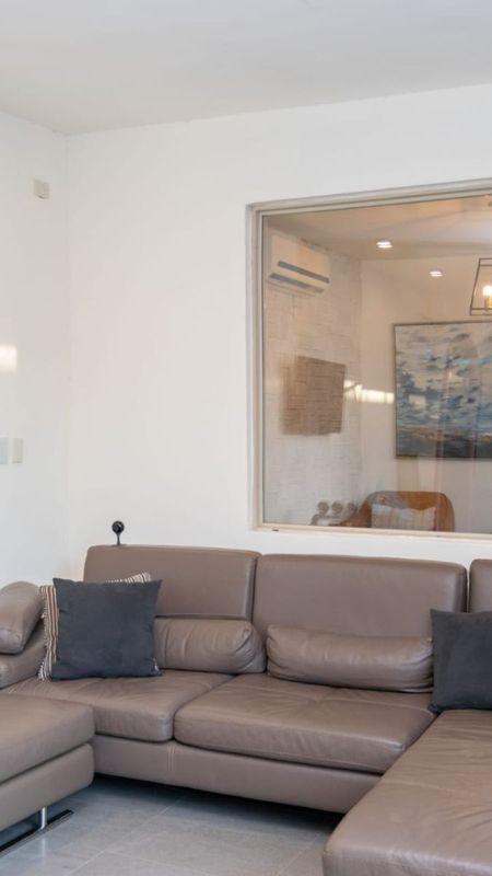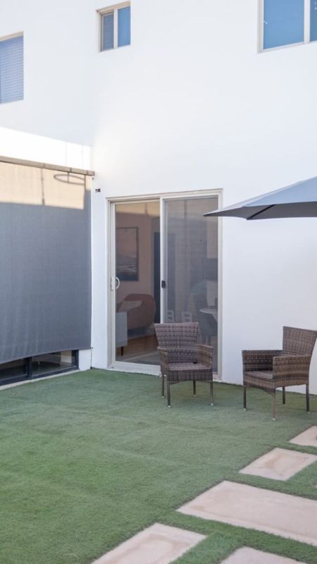 Sala de estar o sala de juegos contigua al patio con baño completo y doble lavabo.