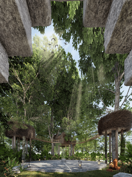 Es una aldea sagrada que fusiona la naturaleza con arquitectura consciente, creando una espacio de paz, conexión y que genera frutos.