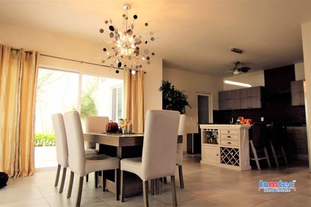 Sala, Comedor, Medio Baño de Visitas, Cocina Equipada cin Alacena, Cuarto de Servicio, Lavanderia, Terraza, Estacionamiento para 4 Autos, 2 Techados y 2 Medio Techados, Frente muy Amplio, Amplio Jardin.