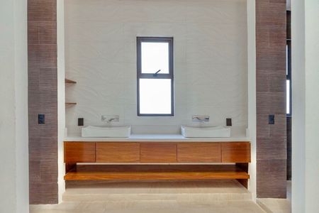 Recámara principal con baño vestidor, doble lavamanos y terraza techada