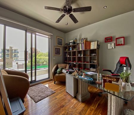 recamara principal con vestidor y baño completo mas oficina o estudio con terraza con medio baño en la recamara principal, aire acondicionado,