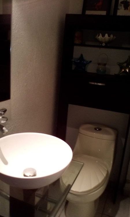 En planta Baja se ubica cochera para 1 auto techada, cuenta con 1/2 baño para visitas, Sala, Comedor, Cocina , 1 recamara con baño completo y aire acondicionado; área de lavado con cuarto de servicio amplio como opción de 5ta recamara y patio.