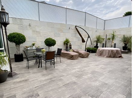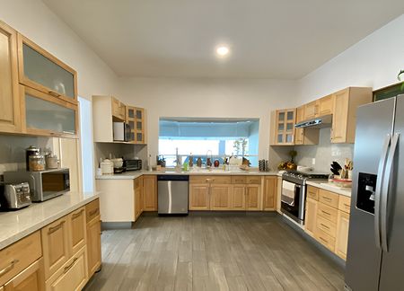En planta baja cuenta con 2 estudios, medio baño de visitas, cuarto de servicio, cuarto de lavado, cocina integral con isla, cochera techada para 4 autos, patio trasero y terraza, y un bungaló con salón de juegos y gimnasio.