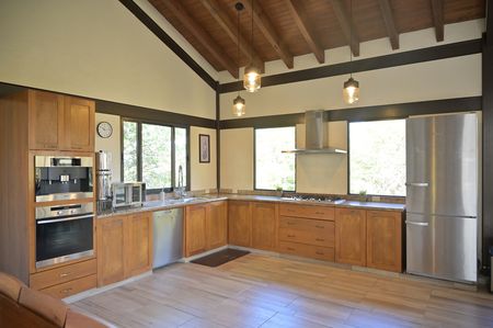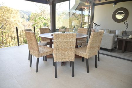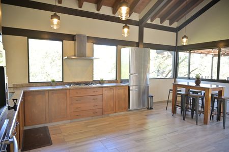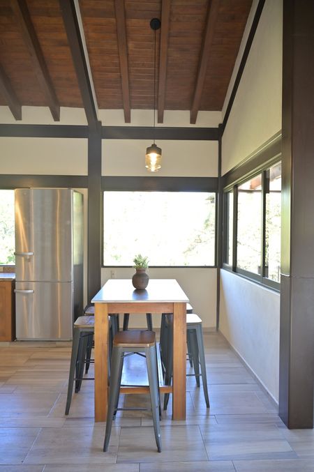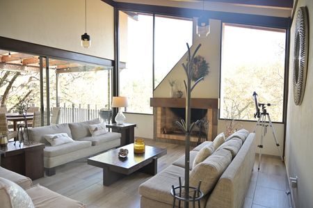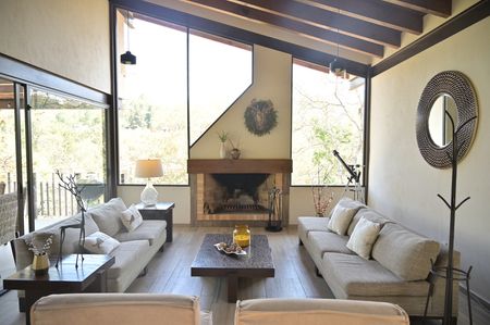 Cuenta con una terraza que da a la copa de un árbol y otra terraza exterior con chimenea.