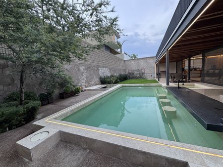 Esta residencia de calidad premium es una joya arquitectónica, diseñada para quienes valoran la excelencia en cada detalle. Desde sus imponentes fachadas y muros en cantera, hasta sus elegantes pisos de mármol travertino, cada espacio refleja un diseño sofisticado y una construcción impecable.