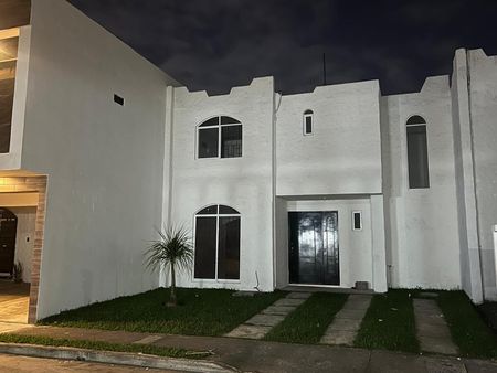 Cuenta con 3 recámaras, 2 baños completos, sala comedor, cocina integral, medio baño de visitas, patio, cuarto de lavado, jardín frontal y garage para 1 auto.