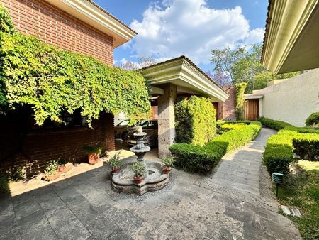 La casa está al borde de una increíble barranca con árboles de 30 años, que te transporta a un bosque dentro de la ciudad, con una vista maravillosa pues está a una altura de 5 pisos arriba de las casas de la parte de atrás por lo cual su vista es solamente la fronda de los árboles y no se ve ninguna casa. Un piso abajo y volado sobre la barranca, hay un cuarto de juegos o recámara, con baño completo, ventanales y techo de madera y vista espectacular. En la parte de abajo hay un área de taller y herramienta y perrera y al fondo de la barranca hay una bodega para materiales de construcción y mantenimiento. También hay un área con cemento y canasta para básquetbol y poste de spiro ball y además adecuada para hacer hermosas fogatas y tener excelentes convivencias nocturnas de jóvenes y adultos.
