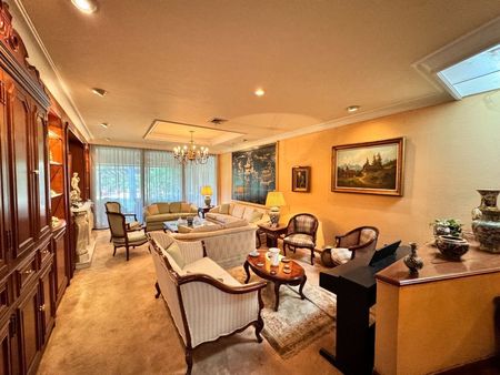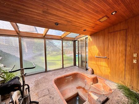 Recámara principal con vestidor, baño y jacuzzi para 5 personas, con paredes y techo de madera, con vista e integrado al jardín, dos recámaras con vestidor y baño. Todas las ventanas son de madera de caoba maciza y los cristales son biselados. Todos los muebles fijos, puertas, muebles de baño y closets vestidores son de caoba. Cuarto de lavado y patio de tender. Cochera para 6 autos grandes, 3 cubiertos. Cuarto para mozo, en el ingreso, con baño completo. Hermoso jardín plano con una vista panorámica espectacular, con alberca y pérgola con asador.