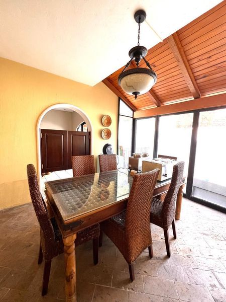 Planta Baja: Estudio (posible 4ta recámara), Sala a doble altura, Comedor, Antecomedor amplio para 6 personas, Cocina Integral con despensa, Medio Baño, amplia terraza, y área de bar, cochera para 5 autos y mucho más. ¡Vive en armonía con la naturaleza y disfruta de las amenidades del coto!