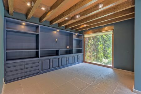 Cuenta con un bonito espacio para poner tu vinos y una mesa de juegos, tipo casino, baño muy moderno de visitas y un estudio amplio que puede funcionar como lugar de lectura u oficina.