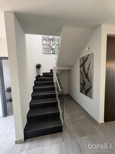 Upper floor: spacious master bedroom with walk-in closet and fully finished bathroom with modern and practical finishes, two additional bedrooms, and a full bathroom to share. Includes built-in kitchen and quartz countertops, sink, faucets, bathrooms with tempered glass doors and bathroom furniture, tempered glass railing. Come and see this pleasant house, you will like it!