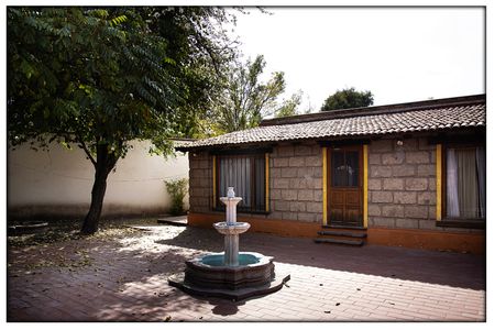 Cómoda propiedad estilo hacienda, rústica, mucha amplitud en todas sus áreas, de un solo nivel salvo una oficina, estudio o cuarto de juegos en el segundo piso. Cuenta con sala, comedor con chimenea y cocina así como seis recámaras, cuatro comparten dos baño las demás tienen el suyo dentro del cuarto. Hermosos techos de madera, área de tv, todo esto alrededor de un patio central con una fuente además de un generoso jardín. Tiene también, un taller independiente así como baños y cuarto de servicio. Garage techado para cuatro autos y otros 4 o 5 sin techar. Ideal para modernizarla! “Los precios están sujetos a cambios sin previo aviso, imágenes ilustrativas”.