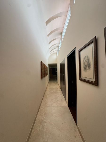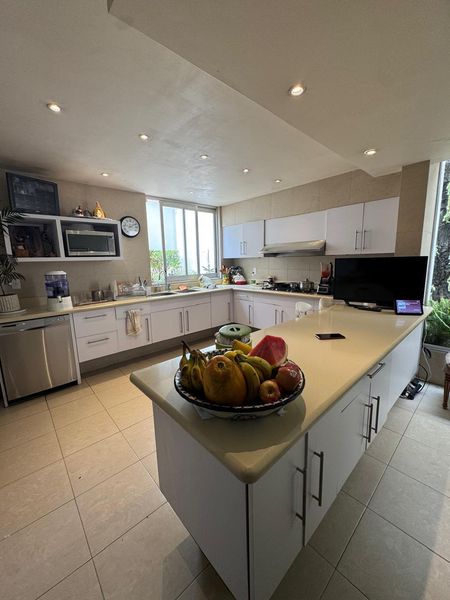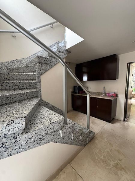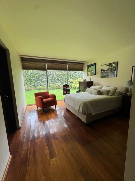 Cochera cubierta para 4 autos, amplia cocina con desayunador. Sala-comedor. estudio biblioteca; sótano, bodega y amplío cuarto de servicio en planta alta.